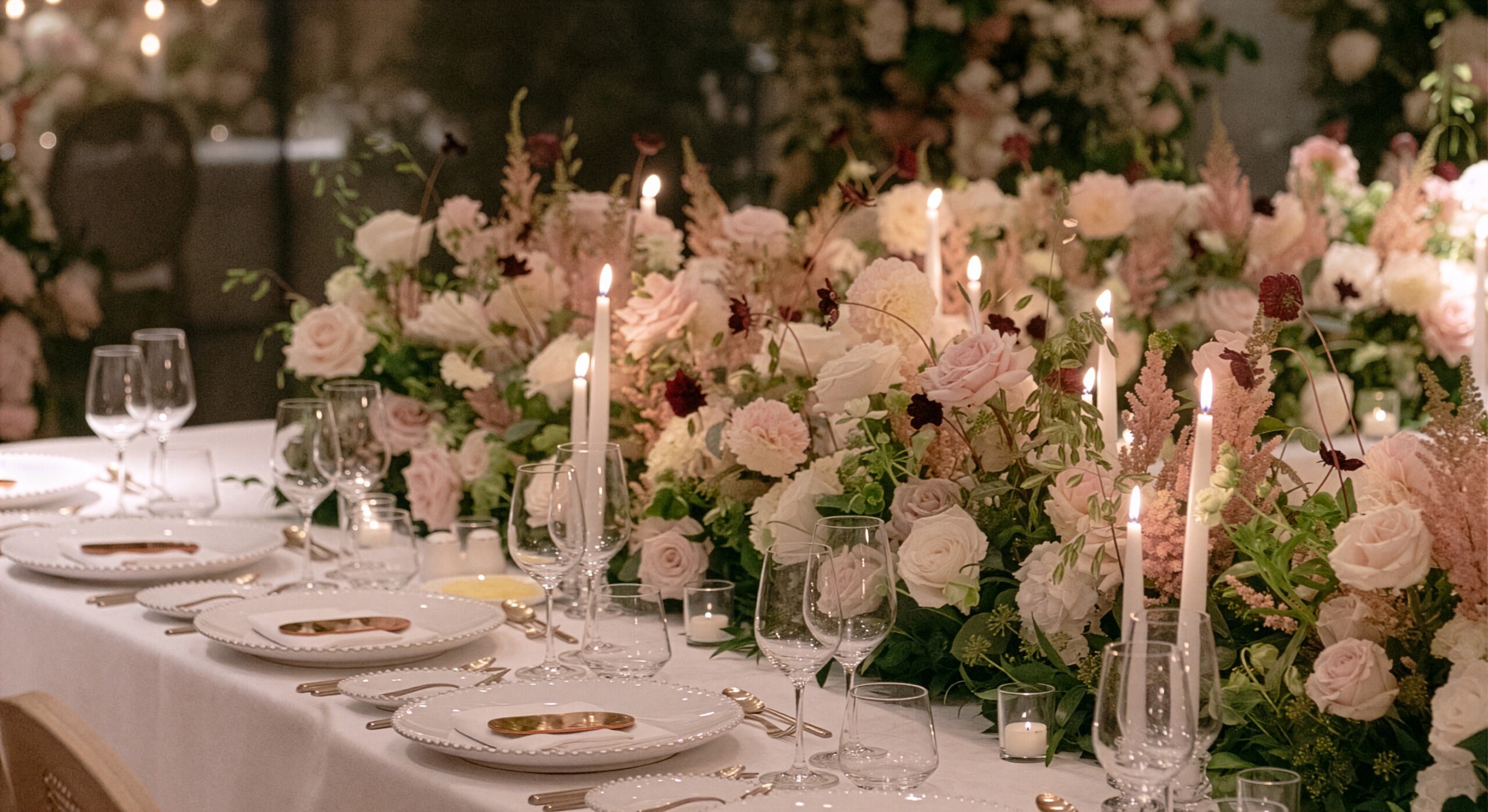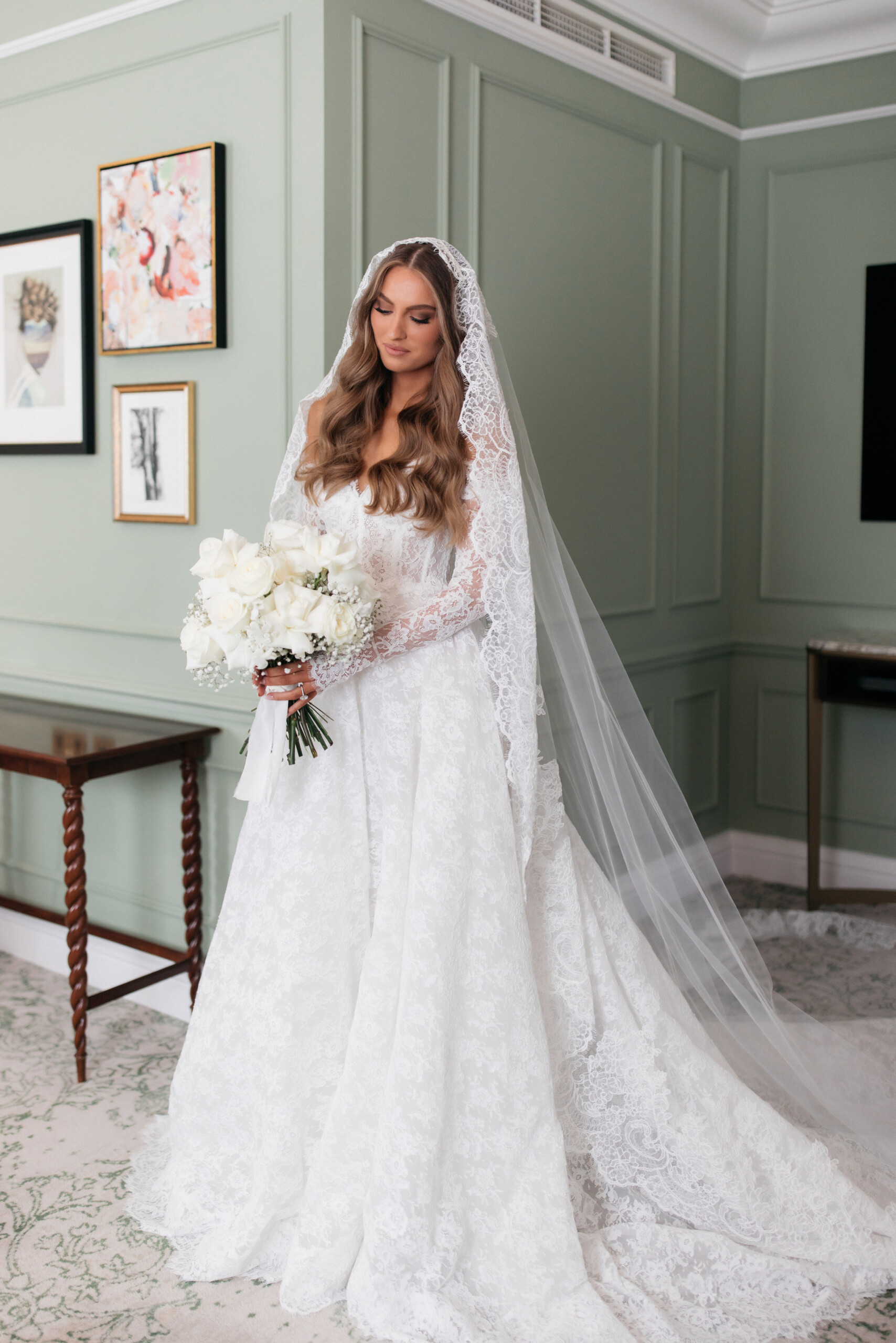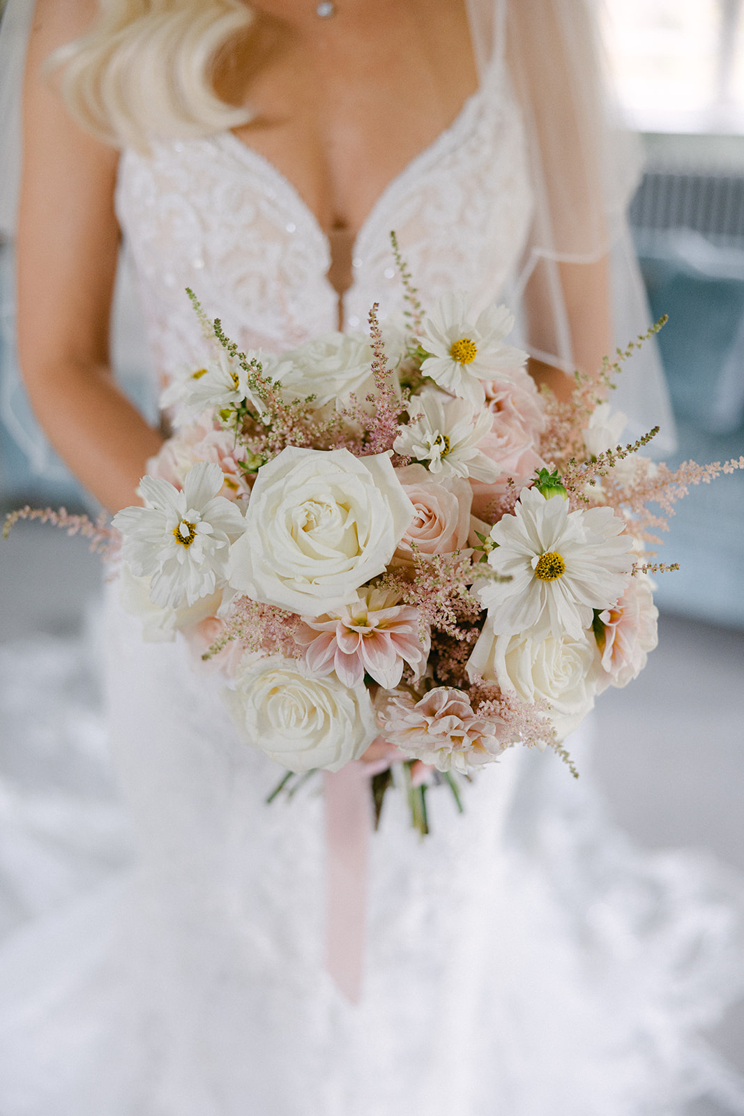 You all did so beautifully. The fireplace and the arch and the bouquet and the table florals and the plinths….You absolutely nailed my fluffy floral vision.